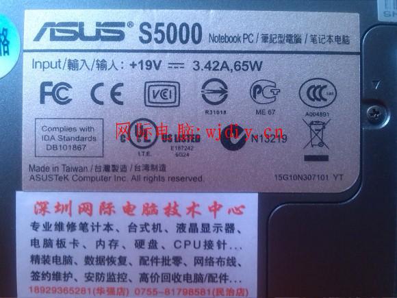 民冶電腦店回收 到一臺華碩S5000筆記本現在低價處理一口價600元!有人要請聯系網際電腦 不包郵寄!可以郵寄另加收郵費!