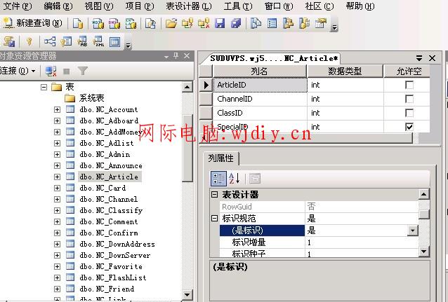 不能將值 NULL 插入列 'ArticleID',表 ' /ask9ad8wj/article/admin_save.asp,行 98 原因分析:SQL數據庫中,建立表時沒有將id列標識規范設置為“是”。 解決辦法:點擊表,修改,設置id列標識規范為“是”,如下圖。