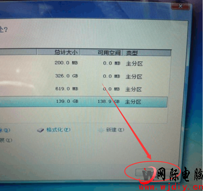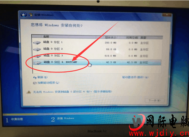 第十一步: 1、點擊第四個‘磁盤分區4BOOTCAMP’ 。 2、然后點擊驅動器選項【高級】A 。 3、然后點擊‘格式化F;點擊確定 。 4、點擊‘下一步’如下圖: