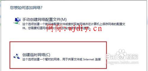 選擇下面的“創建一個臨時網絡”。