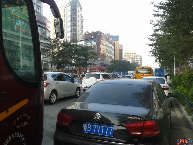 這是東明大廈門口中站臺拍攝的:走路比開車還快呢