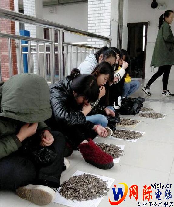 圖為學生嗑瓜子現場。