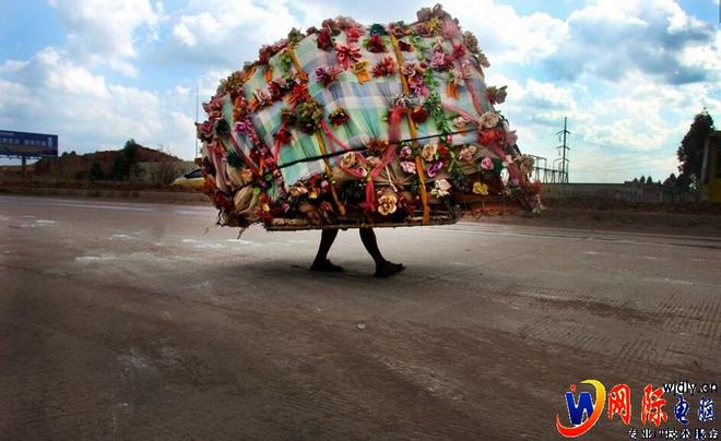 劉齡潮扛著房子回家,腳上穿著拖鞋。劉齡潮的肩上,因長時間挑重物磨破了皮,還起了厚厚的繭。他說,自己南下打工多年,幾年前,萌生了做個房子扛回家的想法,因為“家中泥房已不能住人了”。每一次,都要在路上耗費好幾個月。這一次,他是從梧州出發(fā),目的地是潭頭鄉(xiāng)龍城村的老家。從藤縣到融安縣,他還得走400~500公里,可謂是千里獨行。