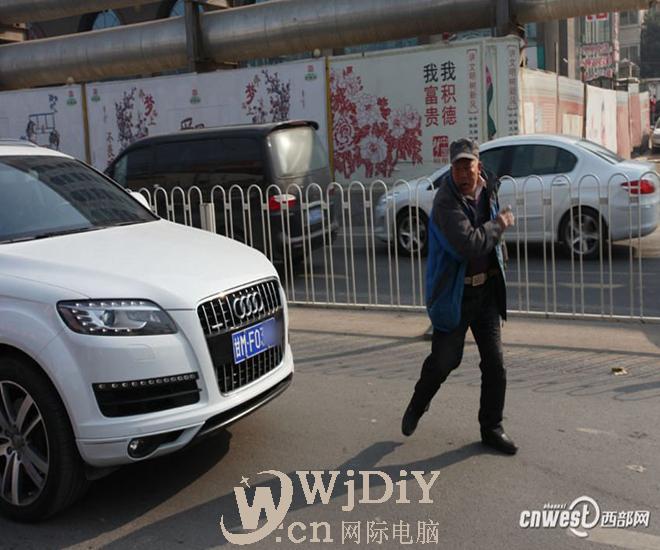 15日中午,西安西影路,一男子強行攔擋過往車輛索要錢財,造成交通堵塞。記者看到的5分鐘時間里,該男子攔截了10多輛汽車,司機不給錢他就趴在車頭不放。要夠了錢該男子大模大樣地離開擁堵的車流走進附近的觀音廟村。
