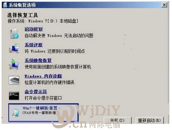 完成上述的操作后,以后如果我們只要在“系統修復選項”窗口,單擊“Win7一鍵刷新/重置”即可使用系統刷新或者重置功能了。