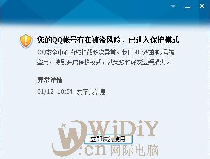 您的賬號存在被盜風險,已進入保護模式;點恢復使用