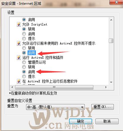 e. 運行 ActiveX 控件和插件——啟用。