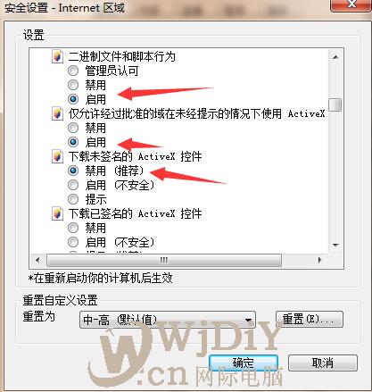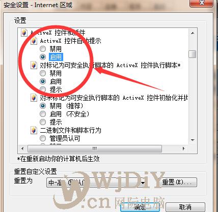 彈出“安全設置”窗口,確保“ ActiveX 控件 和插件”的有關設置為: