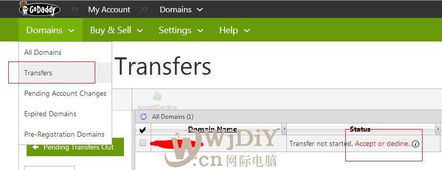 看到你要轉(zhuǎn)出的域名,選中,然后點擊accept/decline,點擊accept同意轉(zhuǎn)出即可。