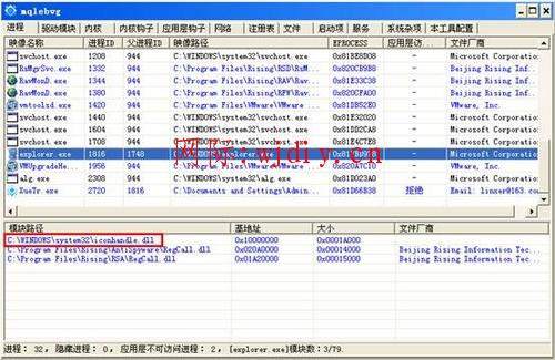 計(jì)算機(jī)重啟后需要進(jìn)行最后的檢查工作,通過(guò)XueTr查看explorer.exe進(jìn)程下已不再加載iconhandle.dll,并且C:\WINDOWS\system32目錄下的三個(gè)可疑文件都不復(fù)存在,明顯的病毒跡象已不再?gòu)?fù)現(xiàn),再次嘗試刪除U盤(pán)下的“我的照片.exe”和“辦公文檔.exe”會(huì)發(fā)現(xiàn)病毒文件夾不會(huì)再次生成了。
