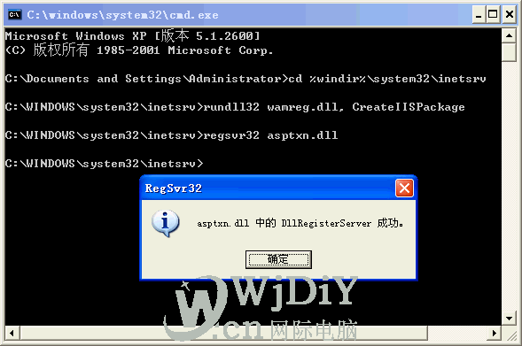 輸入regsvr32 asptxn.dll回車出現成功即可