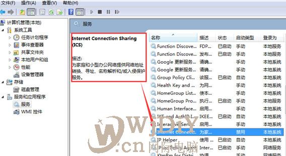 在開始菜單下面的搜索框中輸入服務——找到服務后單擊打開即可。找到Internet Connection Sharing (ICS)服務,單擊啟動,然后右擊選擇屬性后——將其改為自動啟動,這樣以后就不用每次都手動啟動了。