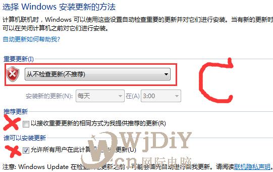 然后選擇“從不檢查更新”,最后點擊“確定”按鈕