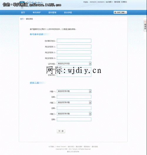 隨后,該釣魚鏈接會提示用戶的QQ帳號部分功能受到臨時限制,提示用戶通過驗證帳號資料才能解除限制(如圖3所示)。