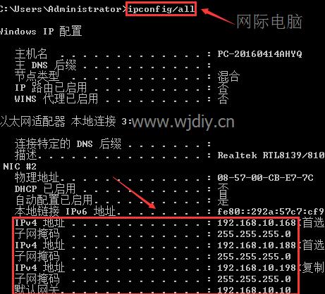輸入ipconfig /all命令來(lái)查詢網(wǎng)絡(luò)參數(shù)