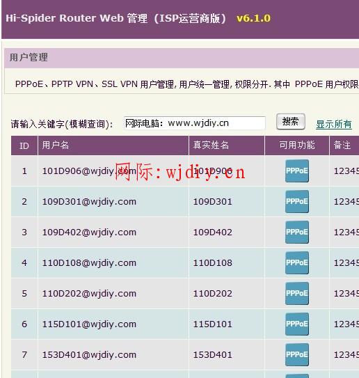 PPPoE,PPTP VPN,SSL VPN 用戶管理, 用戶統一管理