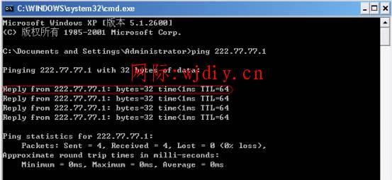 當ping命令返回下面的結果時,說明網絡是通暢的: