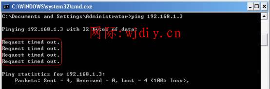 當ping命令返回下面的結果時,說明到目標IP的物理鏈路阻塞或者斷開。
