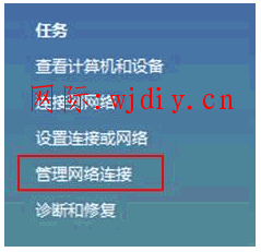 右擊桌面網上鄰居→選擇“屬性”→在網絡管理側邊欄選擇“管理網絡連接”,