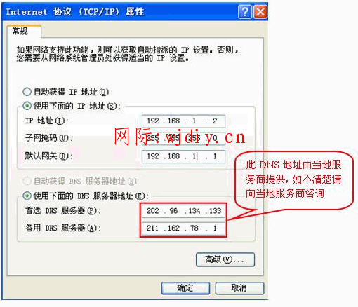 DNS服務器由當地的網絡服務商提供,若不清楚,請向服務商咨詢。
