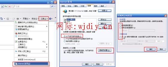 有可能是電腦的瀏覽器或系統問題,先嘗試檢查瀏覽器設置(瀏覽器選項"工具--Internet選項",在"連接"頁面選擇"從不進行撥號連接"后點擊"局域網設置"。保證里面的三項全部都不勾選的狀態下,確定,保存)或者換一個瀏覽器(如火狐、谷歌瀏覽器)后再嘗試,如果仍然不能上網,嘗試換一臺電腦來訪問網絡。