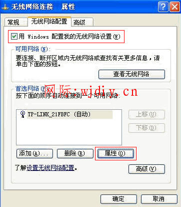 3、打開“無線網絡配置” ,在首選網絡中選擇信號點擊“屬性”。