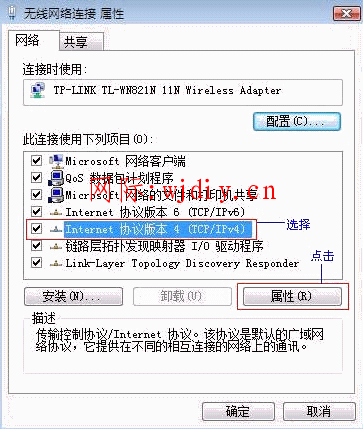 器,請在“本地連接”上右鍵選擇“屬性”,如果您是通過無線連接路由器,請在“無線網絡連接”上右鍵選擇