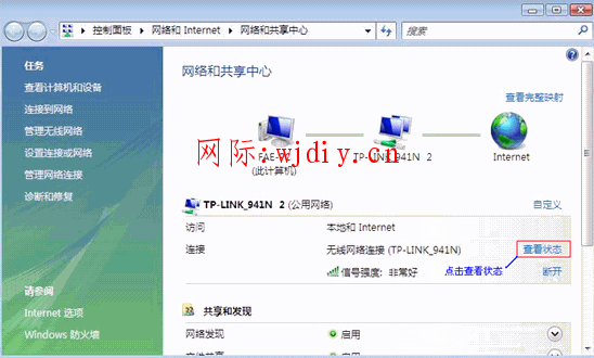 第二步:在對應的連接后點擊“查看狀態”。(也可以點擊“管理網絡連接”,如果您是通過有線的方式連接路由