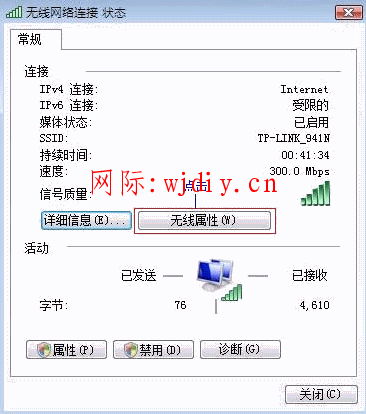 2. 點擊“無線屬性”。