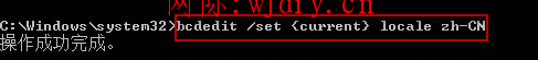 如果不一致,請在命令窗口中鍵入如下命令進行修改:bcdedit/set{current}localeXX-XX命令輸入完畢后,按一下鍵盤上的回車鍵。(注意:XX-XX代表語言。如:中國zh-CN)
