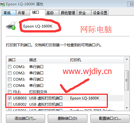 問題出在重復占用了USB打印機端口如圖01所示!只要把這二個問題處理好就可以正常打印了;如里還是不會處理這個問題;可以找網際電腦技術付費處理這個問題!網際電腦服務電話:13713730648 0755-33942288 29167880