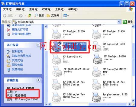 依次點(diǎn)擊“開始”→“打印機(jī)和傳真”。在“打印機(jī)和傳真”窗口中,找到打印機(jī)的圖標(biāo)。