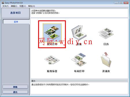 1. 從菜單中單擊照片打印。