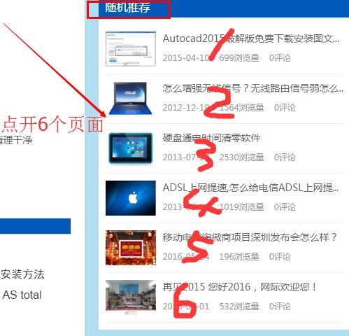 第三步:打開wjdiy.cn網頁找到右邊‘隨機推薦’再點開6個內頁面就完成任務了!如下圖1.2.3.4.5.6