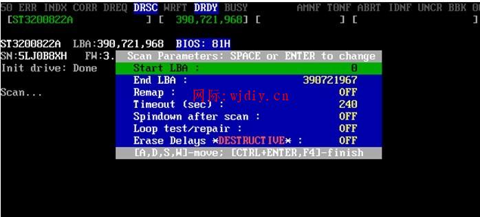 我們主要使用的是檢測功能,對其修理壞道的能力沒什么興趣,修改完成后按F4進入檢測界面。