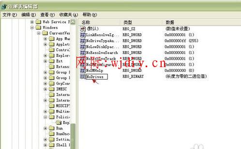 理解了原理后,下面以我的電腦為例說明如何操作:我的電腦有一個軟驅、一個硬盤(5個分區)、一個光驅,盤符分布是這樣的:A:(3.5軟盤)、C:、D:、E:、F:、G:、H:(光盤),所以我的“NoDrives”值為“02ffffff”,隱藏了B、I到Z盤。