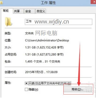 步驟三:在“常規”選項卡上,單擊“高級”。選中“加密內容以便保護數據”復選框