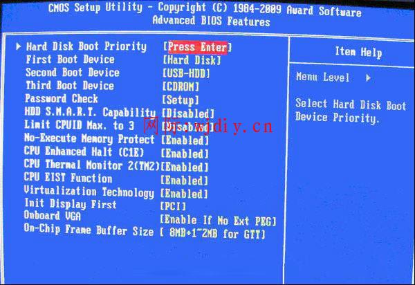 上圖2:高級BIOS設置(Advanced BIOS Features)界面,首先選擇硬盤啟動優先級:Hard Disk Boot Priority