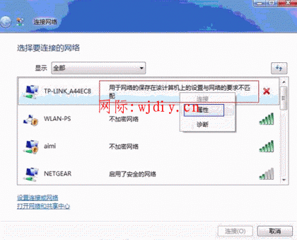 Vista系統(tǒng)下無線連接時(shí)顯示“用于網(wǎng)絡(luò)的保存在該計(jì)算機(jī)上的設(shè)置與網(wǎng)絡(luò)的要求不匹配”,怎么辦?Vista系統(tǒng),無線連接提示“用于網(wǎng)絡(luò)...