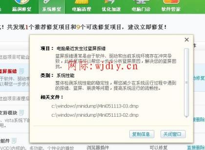 項目: 電腦最近發生過藍屏報錯藍屏報錯通常是由于軟件、驅動和當前系統環境存在沖突導致,此修復項可以幫您一步步分析藍屏原因,解決您...