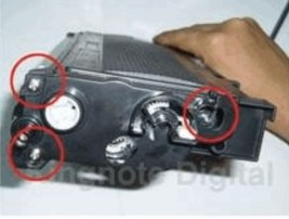 今天上午去秋瑞大廈上門加碳粉905打印機加粉;聯想M7250如何加粉;在這里寫一下加粉過程: 1、抽出硒鼓粉盒組件。2、按下左側藍色手柄,取出粉盒。3、打...