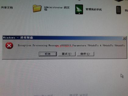 Windows-沒有軟盤,內(nèi)容是Exception Processing Message c0000013 Parameters 764ebf9c 4 764ebf9c ...