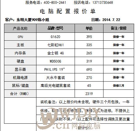 龍華民治東明大廈909陳小姐裝機報價單;辦公用的電腦上網快一點就好!沒有太大的要求:沒有顯示器2000左右的臺式電腦主機 以上就是辦公用