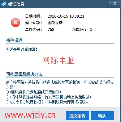 事件描述:離線開票時間超限! 點發(fā)票填開就報如下錯誤提示: 可能原因及解決辦法 請連接網(wǎng)絡,系統(tǒng)將自動完成離線發(fā)票的報送??梢試L試以