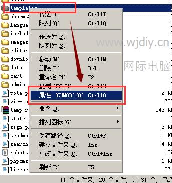 用flashfxp把templates文件設置成0777權限圖文