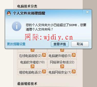 您個(gè)人文件夾已經(jīng)超過了500MB,您要清理個(gè)人文件夾嗎? 如果你電腦硬盤夠大;這個(gè)你可以不管它!不過最好清理一下!一般是好友多!qq群多!發(fā)的圖多!