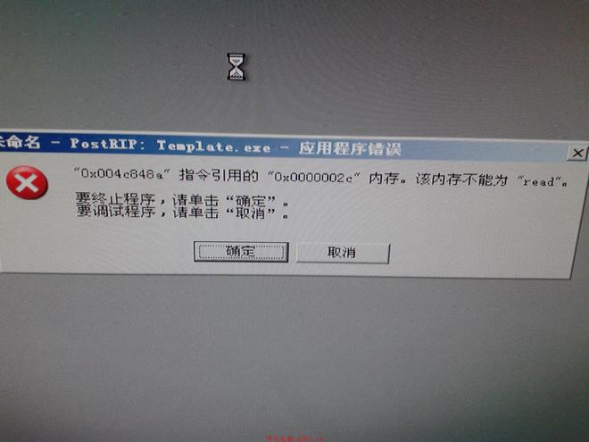 昨天去公司裝2003的系統!正常用沒有問題!但用公司辦公軟件就報錯提示如下圖:"0x004c848a指令用的0x0000002c內存,該內存不能為read點確定與取消都用不了!