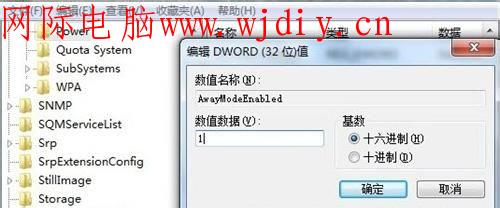 第二步,Windows7系統(tǒng)會(huì)自動(dòng)彈出注冊(cè)表編輯窗口。按照順序依次進(jìn)入HKEY_LOCAL_MacHINE\SYSTEM\CurrentControlSet\Control\SessionManager\Power,在右邊列表空白處用右鍵點(diǎn)擊,在菜單中選擇新建一個(gè)“Dword32位”的值,命名為“AwayModeEnabLED”,雙擊給該鍵值,并賦值為“1”(16進(jìn)制)。修改完畢后,退出注冊(cè)表編輯器即可。