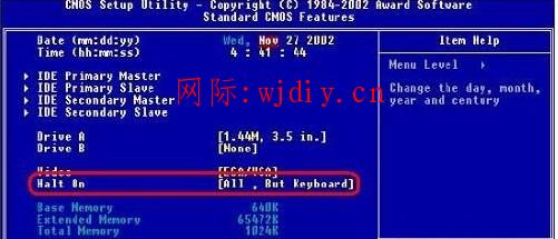 因鍵盤損壞而導致無法進入系統并操作,為了應急,可啟動計算機并按Del鍵進入主板BIOS設置界面,選擇“Standard CMOS Features”,將“Halt On”選項設置為“All But Keyboard”。