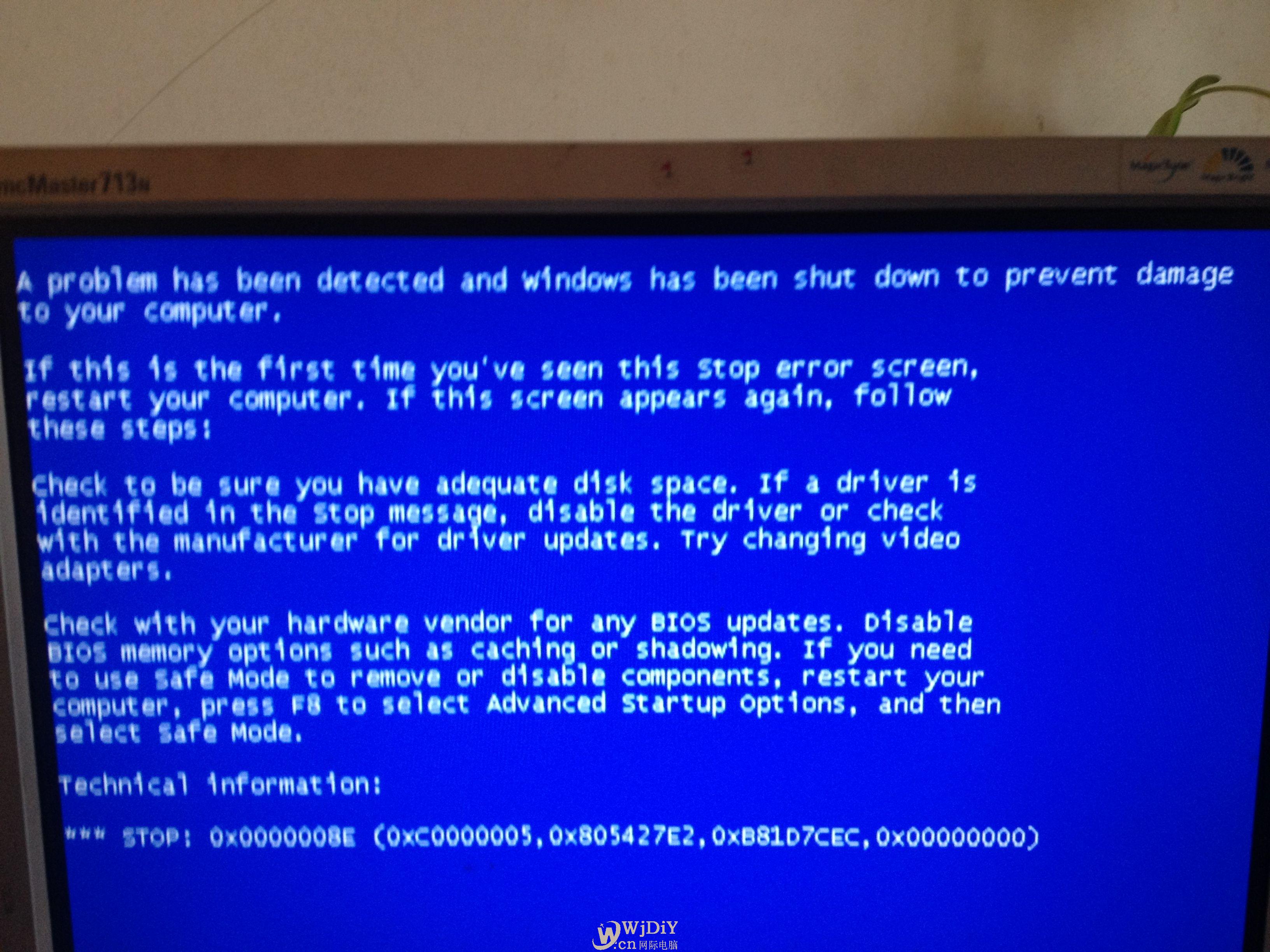 這個代碼一般和顯卡有關,有可能是顯卡損壞,也可能是只是因為安裝了不太兼容的顯卡驅動造成的,建議有花屏現象的先找朋友借個顯卡插上試一下,或者主機有集成顯卡的,用集成顯卡試一下。如果平時沒有花屏現象,那就更換買機器的時候自帶的顯卡驅動試一下